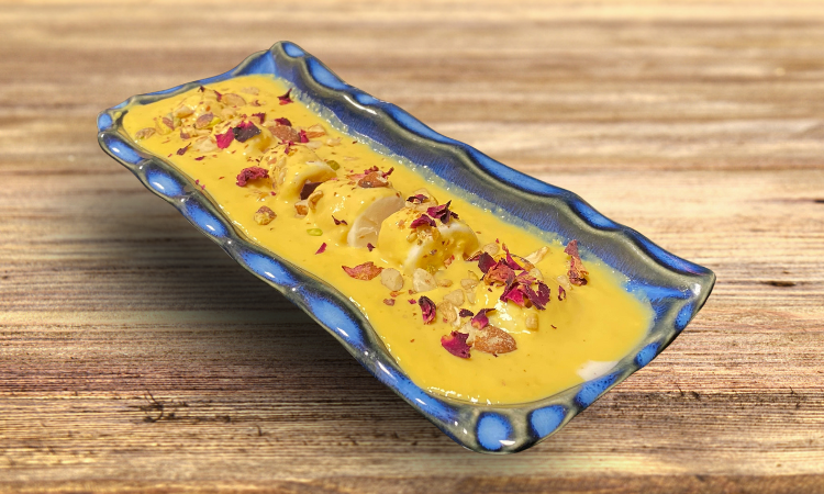 Creamy, dense, and flavorful Indian ice cream infused with a variety of flavors; cardamom, saffron, and pistachios. Then coated in a rich, velvety rabri made with slow-cooked milk