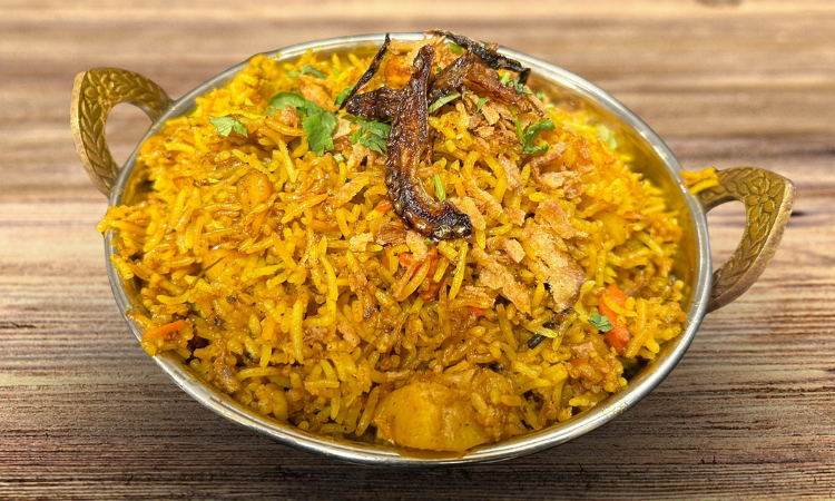 Fragrant basmati rice layered with tender pieces of spiced chicken, cooked to perfection with aromatic herbs and whole spices. Served with two succulent pieces of chicken, this timeless delicacy captures the essence of royal Indian feasts