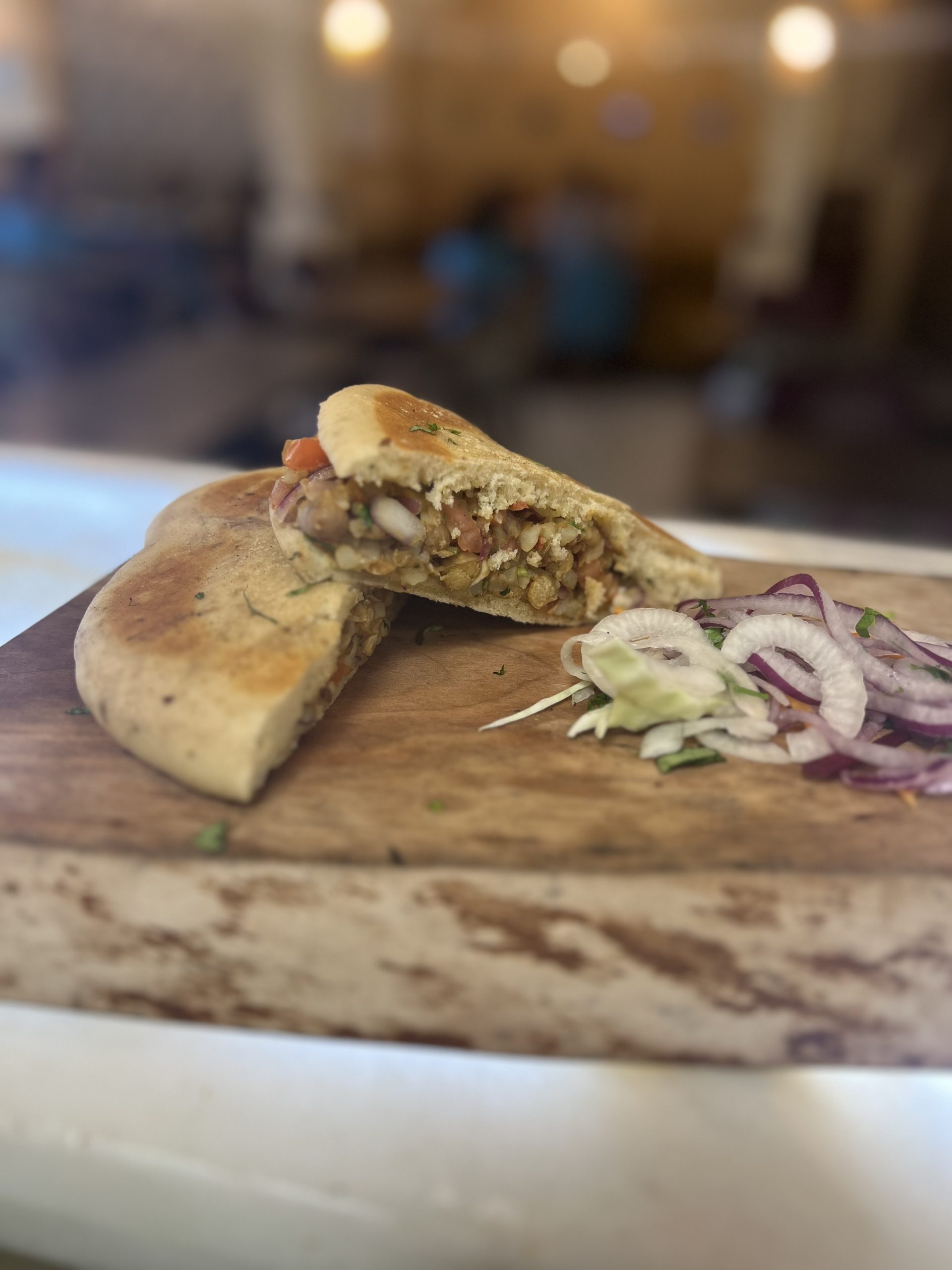 Served with one large bhature, 8oz bowl of chole, vinegar onions, achar & yogurt